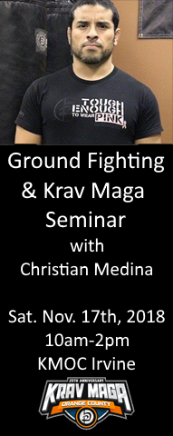 Krav Maga of Orange County is excited to have Christian Medina, Krav Maga Worldwide Lead Instructor and 3rd dan Black Belt, conduct a ground fighting and Krav Maga seminar at our Irvine location on Saturday, November 17th, from 10:00 am to 2:00 pm.